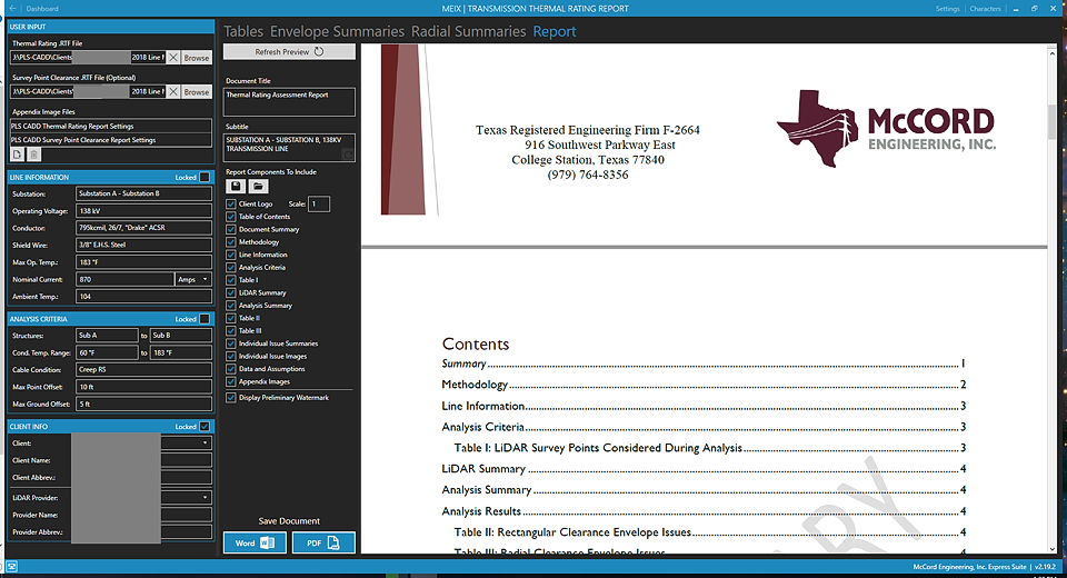 The staff at McCord Engineering are keeping their cool while performing Thermal Rating and Clearance Analysis. At MEI, we are committed to improving efficiency and client satisfaction at every opportunity. Our latest in-house innovation was adding a new module to our MEIx software. Thermal Rating and Clearance Reporting used to be a tedious and time-consuming process, involving copying information from PLS-CADD, inserting it into documents, formatting the reports to make them easy to read and tailored to each client’s needs, and proofreading the final draft. Now our software is integrated with PLS-CADD to create reports we are proud of in less than 10 minutes!
